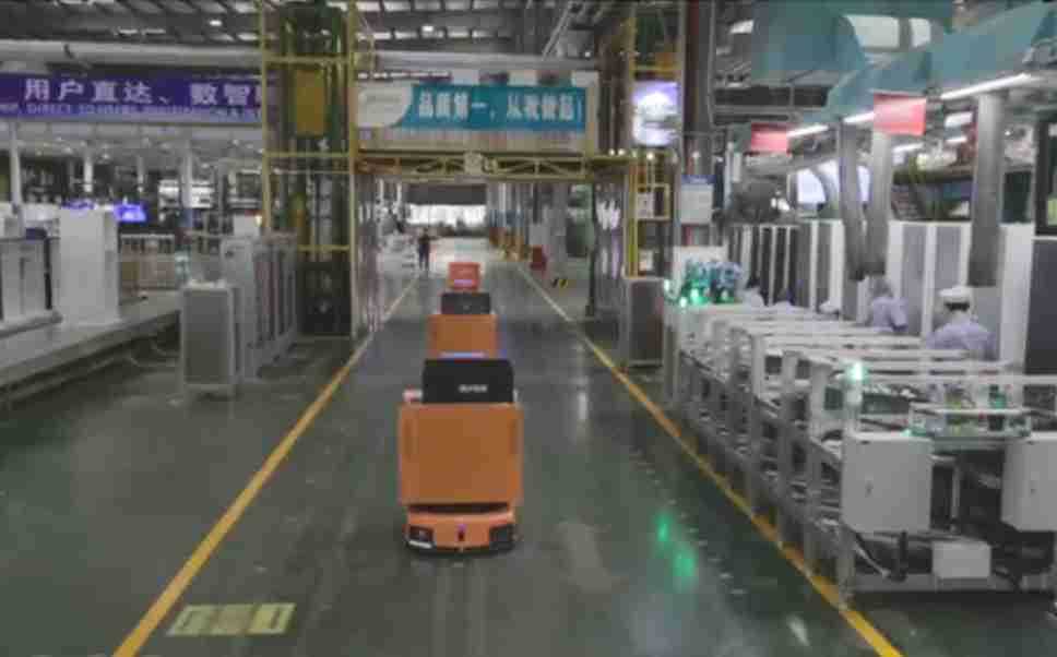 为车载冰箱物流配送打造的智能解决方案,,包含产中物流通过潜伏举升AMR搬运至线边,,,产后成品物流智能仓储,,,流程包含产中物流智能齐套入库,,线边安灯叫料AMR智能配送至线边,,,,成品入库、、出库,,,,通过无人堆高车机器人,,,智能仓储管理替代人工作业管理,,,实现更高存储、、、更高效率、、、更具柔性化的解决方案。。。。